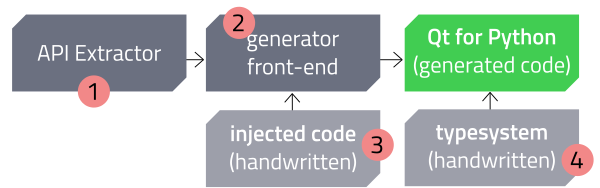The following diagram summarizes Shiboken’s role in the Qt for Python project.